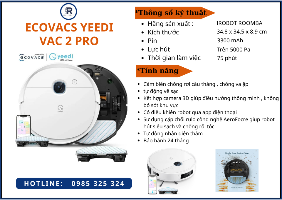 Ecovacs Yeedi Vac 2 Pro là một trong những dòng robot hút bụi tiên tiến nhất hiện nay, sở hữu công nghệ hiện đại và thiết kế thông minh, giúp việc dọn dẹp nhà cửa trở nên dễ dàng và hiệu quả hơn bao giờ hết. Với tính năng hút bụi mạnh mẽ, khả năng lau nhà tự động và ứng dụng công nghệ AI, Yeedi Vac 2 Pro không chỉ là một thiết bị gia dụng mà còn là trợ thủ đắc lực trong việc duy trì không gian sống sạch sẽ và ngăn nắp